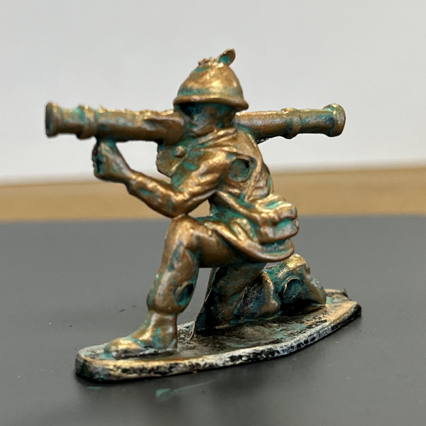 - Typowe dla patynowanego brązu niebieskie utlenienie