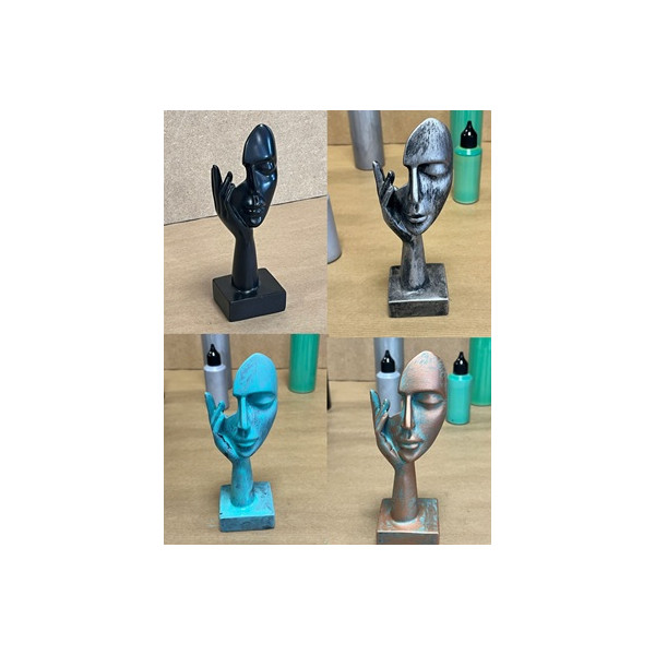 Każdy kompletny zestaw zawiera 4 gotowe do użycia produkty, odpowiadające czterem etapom niezbędnym do uzyskania efektu patynowanego brązu: