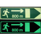 Piktogramy są na tyle duże (100 cm x 50 cm), że są widoczne z odległości 25 m (zasada l = z0xh) i wskazują odległości do najbliższych dwóch wyjść awaryjnych zarówno w lewo, jak i w prawo. Obydwa sygnały mogą być umieszczone obok siebie lub jeden na drugim.